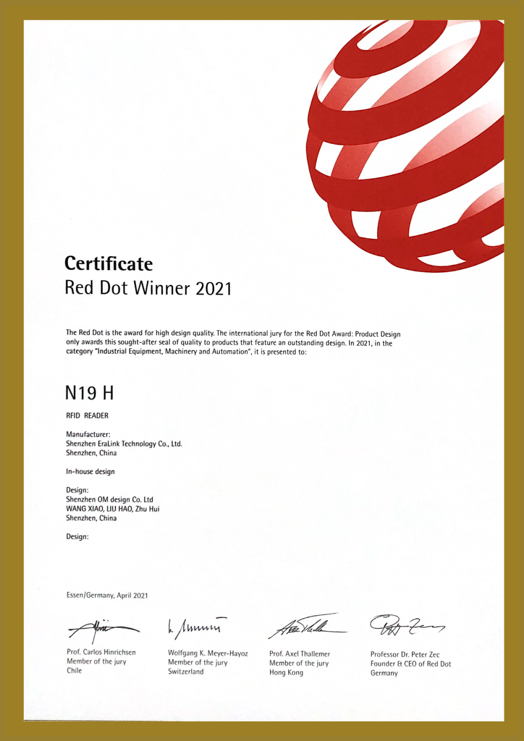 EraLink Technology Products Win Another Award Recently, the winning works of the 2021 German Red Dot Award were announced. The ELT-N19H data collection terminal, a product of EraLink Technology Company, stood out from nearly 10,000 products. It has been recognized by internationally renowned designers in various fields in terms of appearance, function, innovation, etc., and has successfully won.